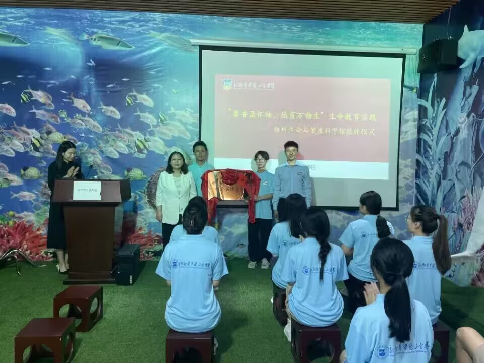 为深入贯彻落实党的二十大精神,积极推进暑期“三下乡”社会实践活动,7月9日,我校德馨书院“馨香盈怀袖,德育万物生”社会实践团队与郑州生命与健康科学馆举行大学生校外生命教育实践基地揭牌仪式。郑州生命与健康科学馆馆长王永超、德馨书院党总支副书记平丹丹、德馨书院院务主任高明、辅导员宋津娴及学生代表参与了本次活动。