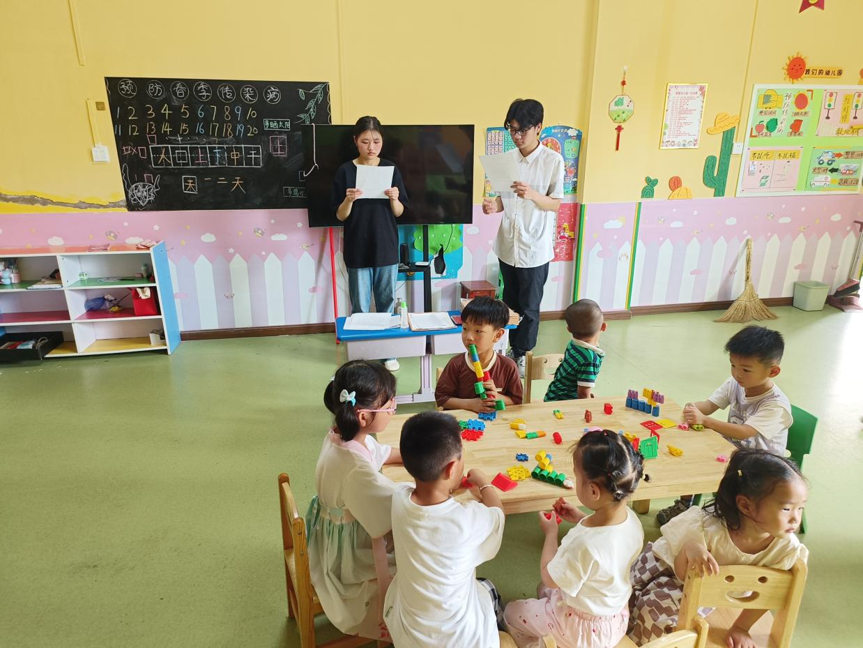 7月12日,在负责人郭涛的带领下,实践团到达了群星幼儿园,熟悉环境后,团队成员用简单明了的语言和可爱的图画向孩子们介绍了人体的基本结构和功能。7月13日,实践团组织孩子们分组进行角色扮演,即在团队成员的指导下扮演医生、护士等角色,通过模拟医疗场景,让孩子们学会如何正确洗手、包扎简单创伤等基本医疗技能。7月14日,实践团通过讲故事、播放动画等方式向孩子们传递医学小知识,并从预防感冒、正确饮食、保持良好的卫生习惯等层面进行了讲解,引导孩子们养成健康的生活方式。7月15日—17日,实践团被分为几个小组,分别在回民新村、超市、公园以及购物街等人流量大的区域分发有关儿童医疗知识的海报和宣传单。7月18日,实践团举行总结会议,对此次社会实践活动进行了总结分析。