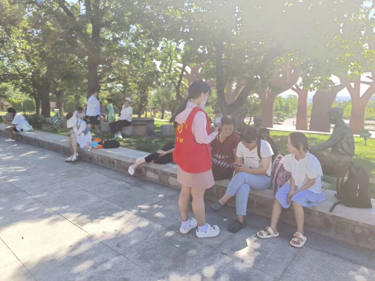 7月12日,团队成员召开线上开幕会,确定了活动主要的宣讲内容和宣讲地点。之后,团队负责人王乙茜强调:“在实践过程中,大家一定要保护好自己,做好个人安全防护。”7月13日—7月14日,团队成员与桑园村村委会以及桑园小学取得联系后,对接了活动时间和活动内容,进行了活动相关资料和课件等的收集和制作工作。7月15日—7月16日,团队成员来到桑园村村委会与其负责人进行对接,并针对活动内容与其负责人进行探讨。随后,成员们深入居民社区及周边景点,进行了红旗渠精神的宣讲工作。7月17日—7月18日,实践团队来到桑园小学与老师进行初步对接之后,团队成员来到教室向小朋友们宣讲了红旗渠精神。