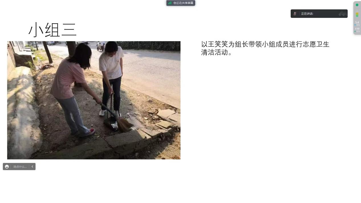 最后“赴开封市乡村环境治理实践团”分享了自己保护环境的故事,他们说,只有环境好了,自己才能生活的好,因此大家选择环境治理这个主题开展社会实践,他们从自己帮助环卫工人打扫卫生,向大家介绍垃圾分类的有关知识等方面进行了分享,同学们也纷纷表示,现在乡村的环境越来越好,这种宣传非常重要,也非常有意义。