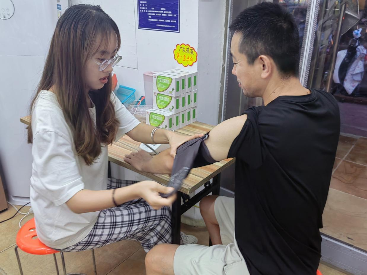7月6日,团队成员在线上举行实践活动开幕式后,由负责人李蓓组织团队成员在社区集合,向当地居民讲解医疗卫生常识。7月7日—7月8日,团队成员从高血压病、糖尿病、痛风、颈椎病、烫伤等疾病常识以及预防措施,向群众宣传健康生活方式等基本知识。7月9日—7月11日,团队成员现场解答居民的健康疑问,并为居民进行了健康体检,体检内容主要包括:肺活量的测量、心电图的测量、血压的测量、体温的测量。7月12日,社会实践进入尾声,团队成员分别对此次社会实践进行了总结,分享了各自的心得体会。