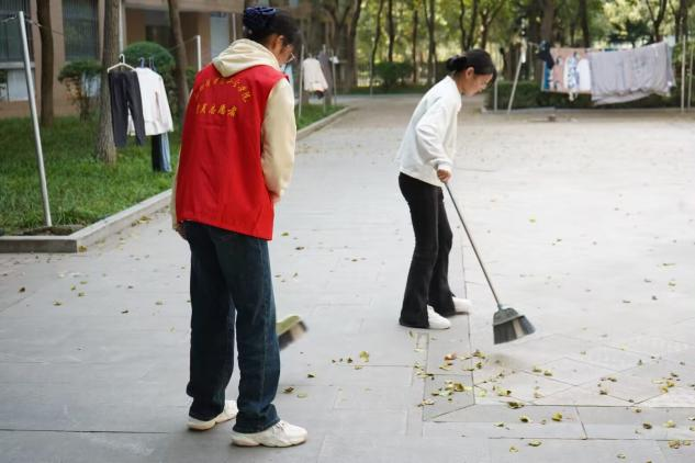 来自不同年级、不同专业的青年志愿者们身穿红色志愿者马甲,手拿扫帚,以饱满的热情投身于此次清扫工作中。清扫过程中,志愿者们积极配合,分工合作,不仅认真清理了书院每个角落的落叶和灰尘,还将散落在地上的纸屑、塑料瓶等废弃物品做了分类回收。志愿者汪怡辰同学表示:“我觉得这次活动十分有意义,在这次活动中我感受到了每个人肩上都担负着对环境保护的责任和义务,相信在大家的共同努力下,环保的种子会在每一个角落生根发芽。我们的世界将变得更加美好!”