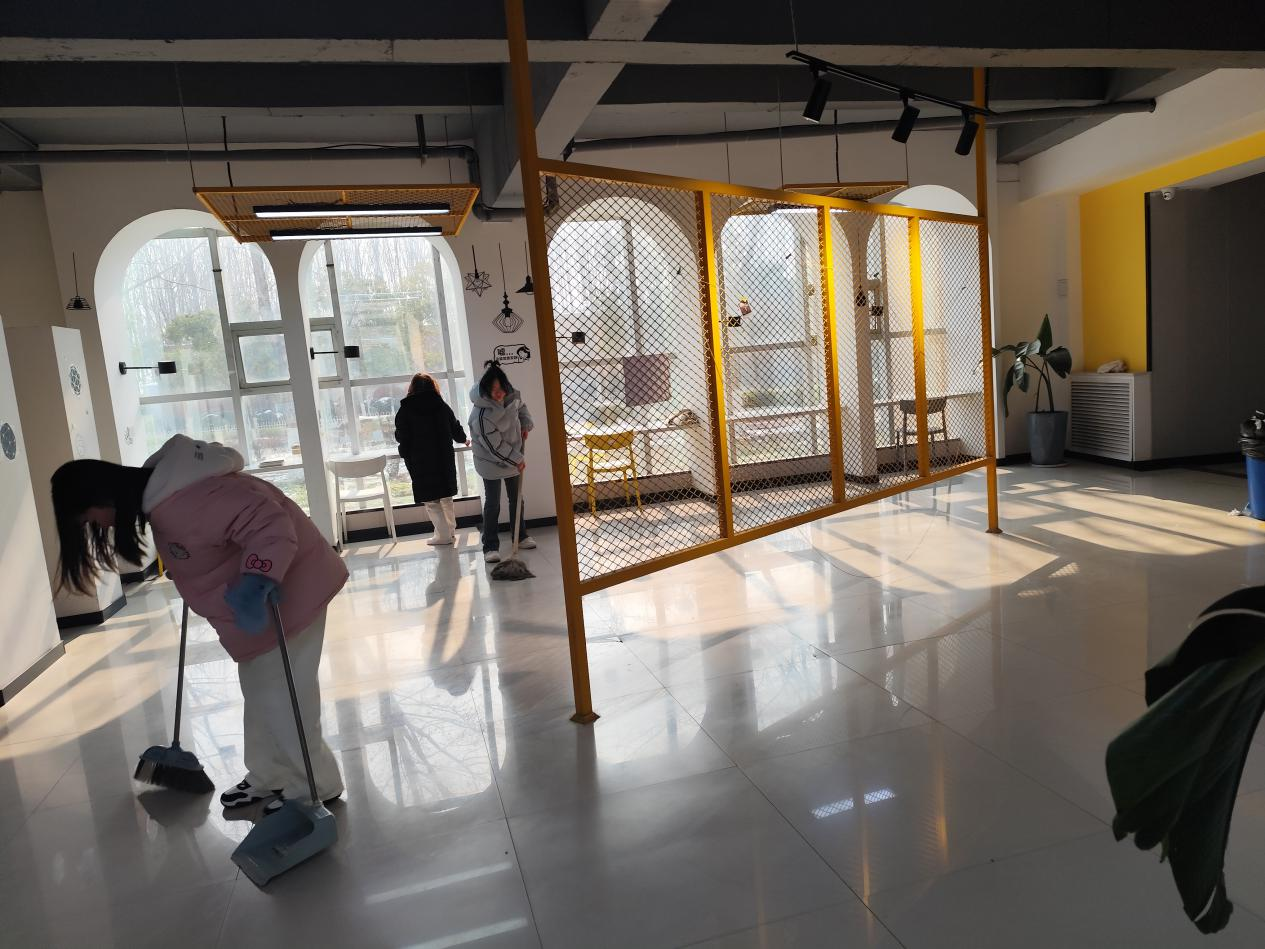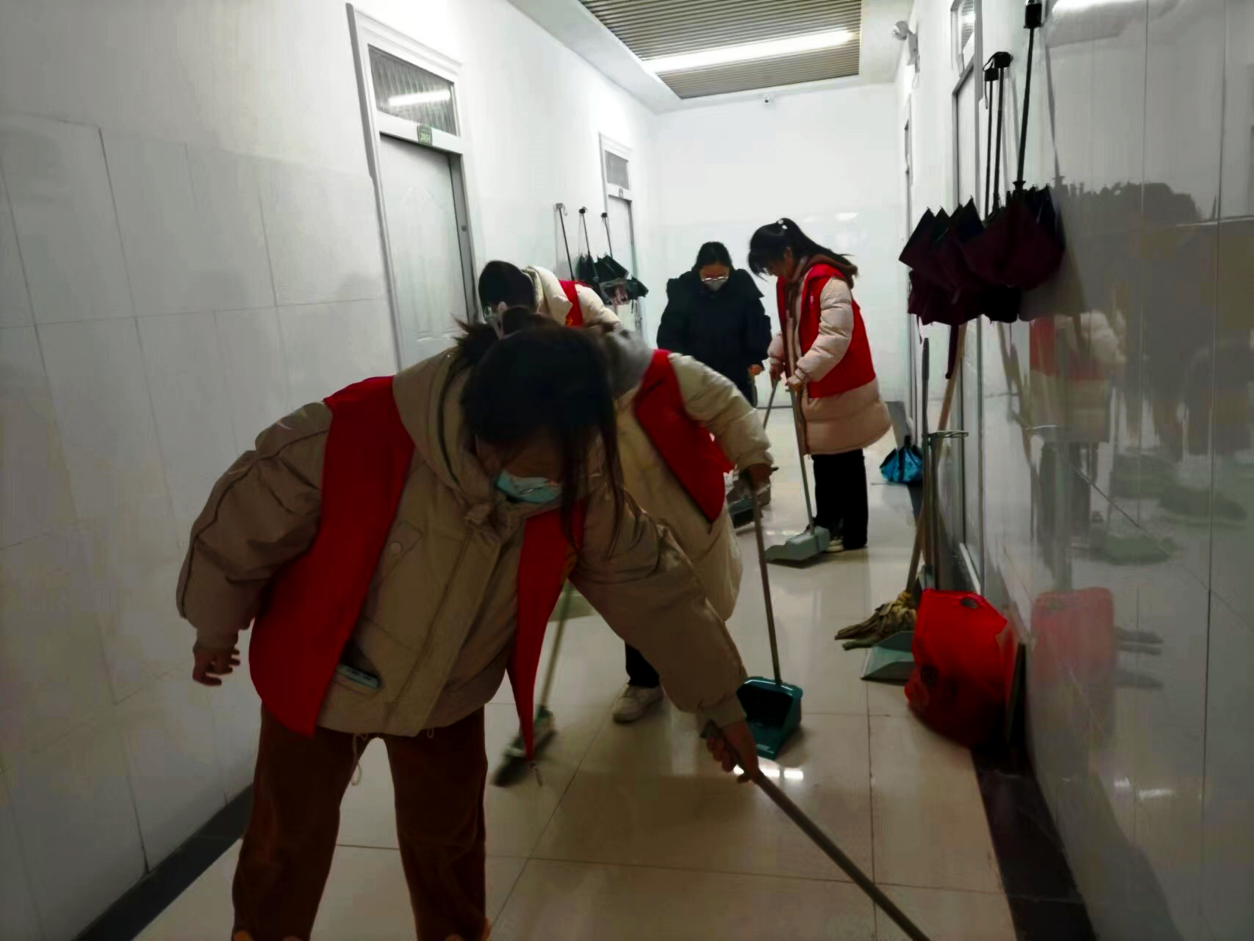 活动伊始,志愿们准时到达指定地点集合,随后由活动负责人鲁简向志愿者讲解注意事项,分配小组工作任务。紧接着志愿者们来到宿舍楼内,按照工作安排,开始打扫自己负责的卫生区域。活动期间,宿舍楼内处处可见志愿者们忙碌的身影,他们各司其职,仔细地清扫着地面、墙壁和窗户,旨在通过自己的努力,为同学们营造一个干净整洁的宿舍环境。经过大家的共同努力,焕然一新的宿舍走廊让每一个经过的同学都感到心情愉悦。