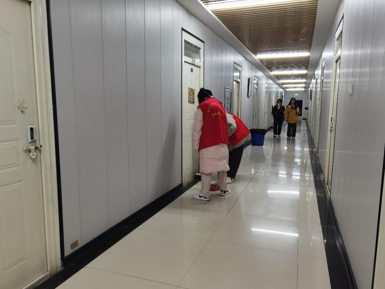 志愿者们以楼层为单位分配任务,对走廊、楼道等地点进行了清洁。此次志愿活动过程中,志愿者们认真地打扫了走廊的每一个角落,对宿舍门口的垃圾进行了清理,对楼道的扶手、窗户等处也进行了擦拭清洁。在志愿者们的共同努力下,宿舍楼恢复了原有的干净与整洁。