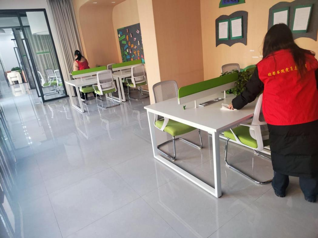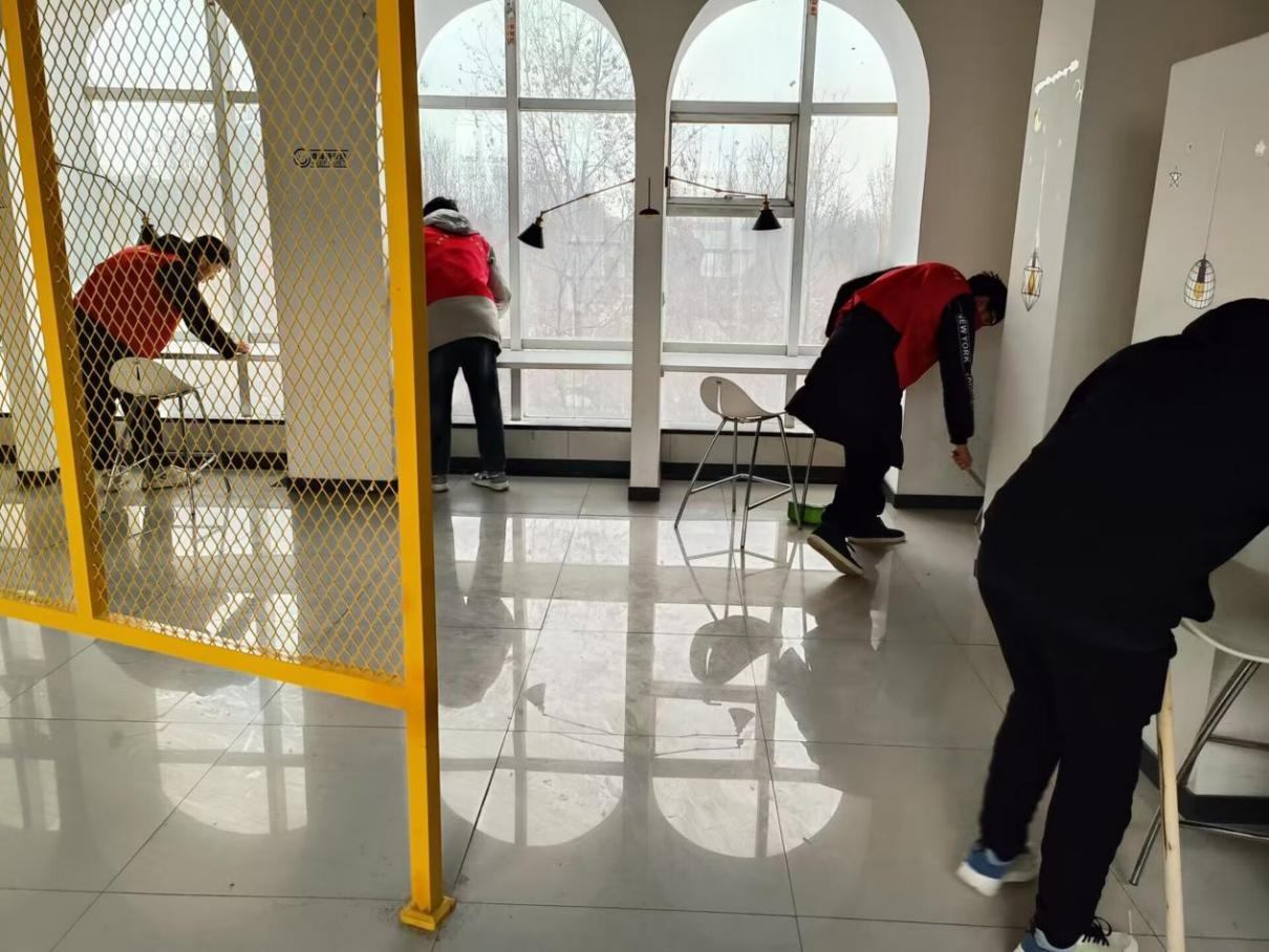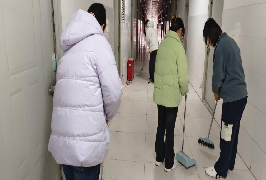 活动伊始,志愿者们按照要求提前到达活动场地,在负责人鲁简讲解完活动期间的工作要求和注意事项后,志愿者们自行分组,在寝室楼道中开展了全面的清洁工作。活动过程中,志愿者们分工明确,配合默契,使用抹布、扫帚、拖把等清洁工具对寝室楼道的每一个角落进行了清理。每个志愿者都极其的认真,他们不怕脏累,不仅清扫了寝室楼道地面、擦洗了门窗,还整理了寝室功能区的书桌、归置了书桌上的物品。