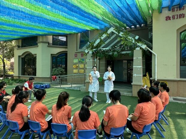 活动最后,志愿者们用通俗易懂的语言从“海姆立克急救法、心肺复苏操作和磕碰伤处理方法”几个方面为幼儿教师进行了一场急救知识讲解。在心肺复苏实际操作环节,教师亲身体验“心肺复苏”的方法,志愿者手把手示教并纠正一些操作手法。