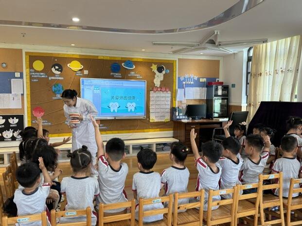 随后,党员代表用精美制作的PPT和牙齿模具,生动形象的向小朋友们讲解了健康方面的知识,其中包括怎样保护牙齿、如何健康合理饮食等,“听着孩子们稚嫩的提问声,我的内心深受触动,在今后的学习和工作中,我会不断激励自己,以满腔的热情和坚定的信念,服务更多的群众”,学生党员陈浩博说道。