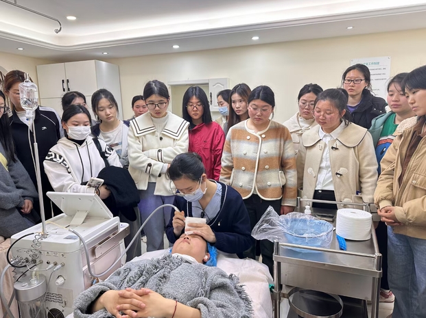 学习交流中,河南美容整形医院负责人为同学们介绍了医院基本情况及目前所开展的项目,医院相关专家介绍了当前先进的医疗设备、技术特点和诊疗方案等。在实践环节中,同学们实操学习激光美容仪器使用,体验光子嫩肤仪和激光治疗痘印的效果,参观了整形医用材料,大家纷纷表示收获颇丰。2021级健康服务与管理专业79班邢瑞燕表示:“通过这次参观活动,不仅为我们增加了就业选择,还有利于明确我们日后的就业方向,帮助我们在日后的学习中目标更加明确,动力更加充足,这是一次非常有意义的‘开学第一课’。”