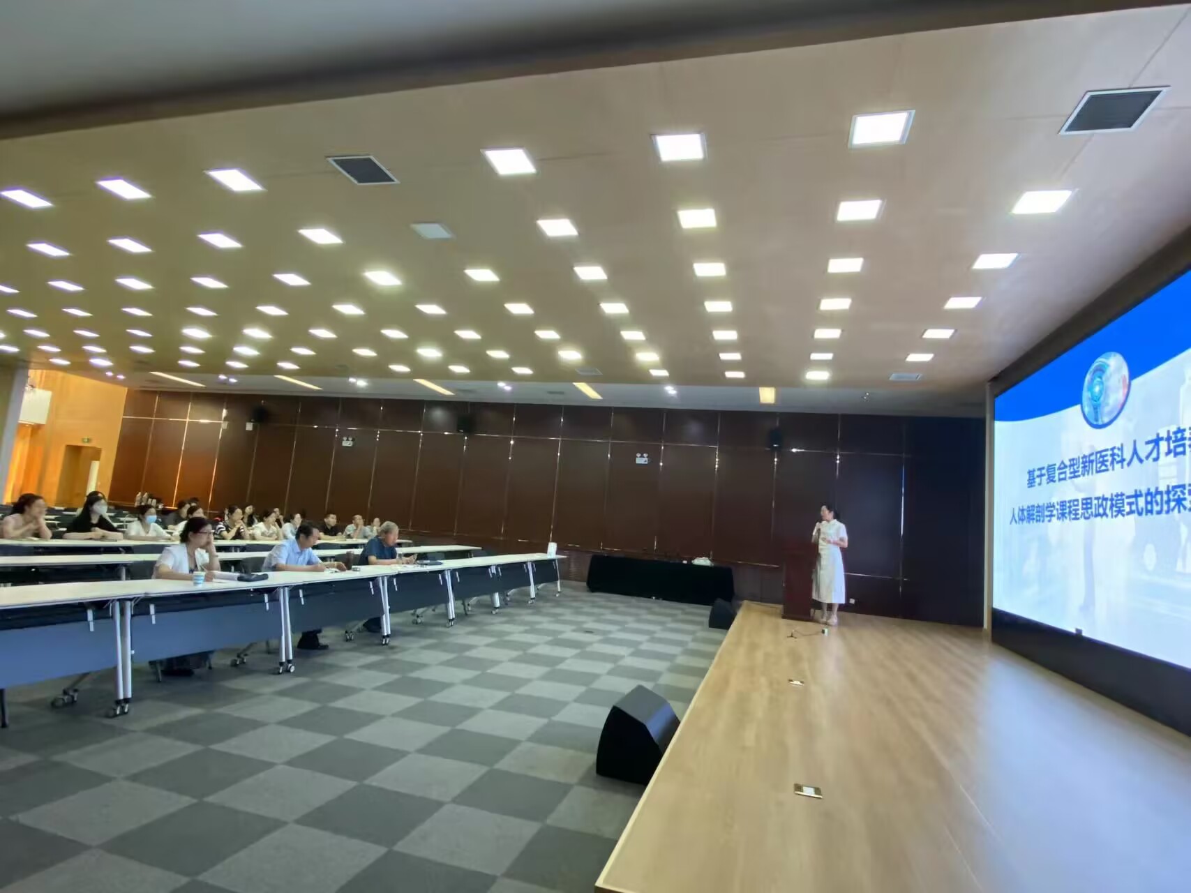 6月24日上午,由医学检验学院、健康管理学院、德馨书院联合主办的学术讲座“基于复合型新医科人才培养的人体解剖学课程思政模式的探索与实践”顺利举办。本次讲座由检验与影像学院党总支副书记兼医学影像学院副院长苗莹莹主讲。教师教学发展中心主任李东亮、马振江、孙玉华以及相关院系老师、德馨书院全体辅导员参加了讲座。