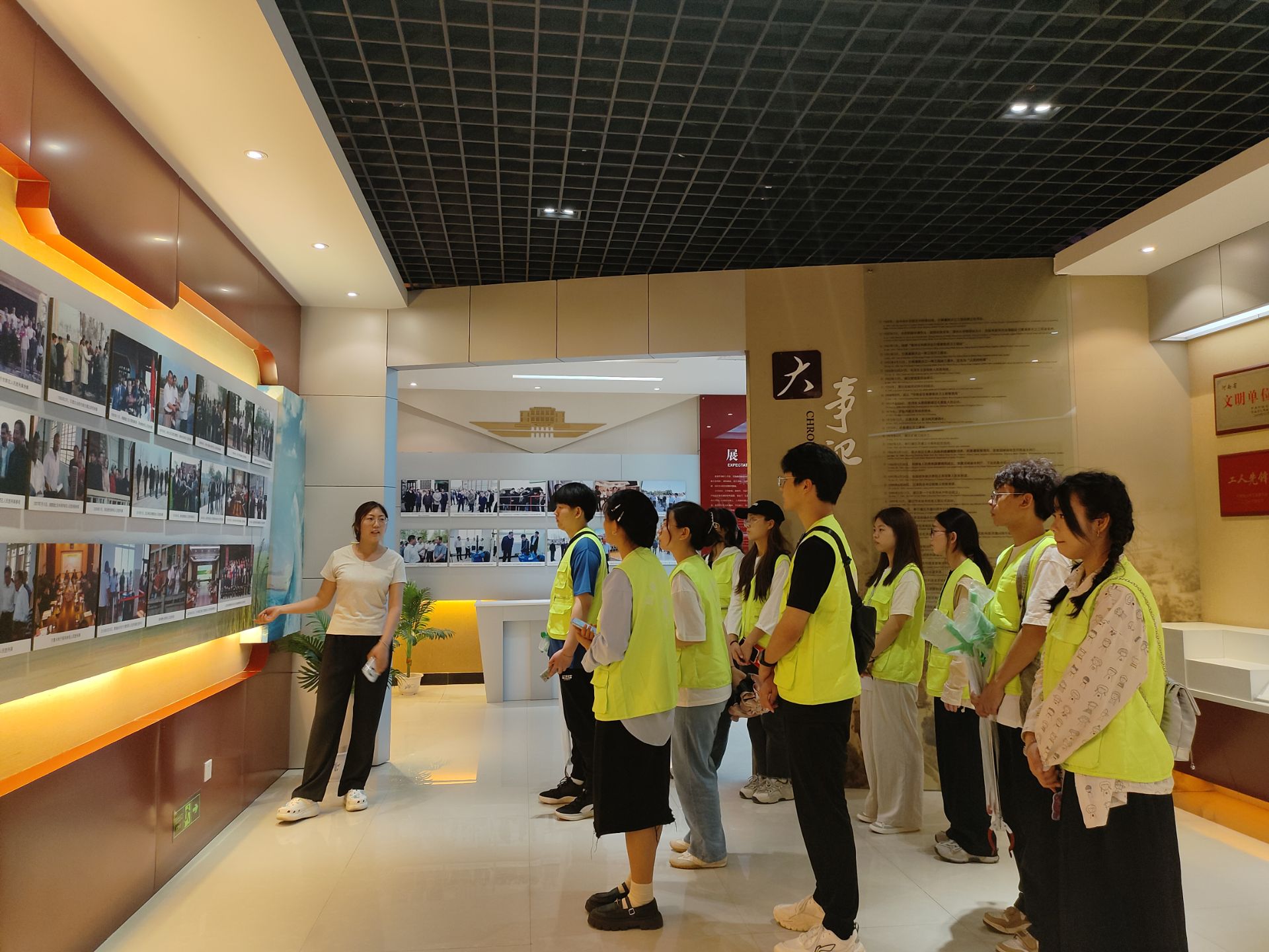 7月3号团队乘坐大巴到达实践的第一环——人民胜利渠渠首,成员们在讲解员的带领下参观了人民胜利渠展览馆,观看人民胜利渠建设的历史资料和图片,观摩人民胜利渠的建设过程和奋斗故事,深切感受了人民胜利渠建设者的艰苦创业、无私奉献、团结协作、自强不息的精神风貌。同时到达渠首实地观察了人民胜利渠的运行情况,了解了人民胜利渠的灌溉效益和社会效益,感受了人民胜利渠的生命力和魅力。它作为我国水利工程的重要一环,不仅是一项重要的民生工程,更是国家发展的标志性工程。它承载着历史的厚重,见证了人民奋斗的历程,也昭示着未来的希望。