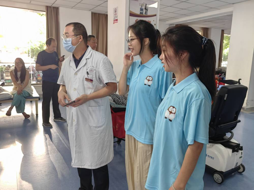社会实践活动是培养同学们运用知识、磨练意志、实践成才的大课堂,在活动开始前,实践团队分别从主题研讨、社情调研、活动流程、注意事项等方面进行沟通安排,为后期的实践活动做好充足准备。7月3日上午,在指导老师范梦瑶与张改改的带领下,实践团队前往郑州人民医院北院区,与康复科主治医师郭志平医生对活动理念与具体内容进行沟通交流,随后在郭医生的带领下共同参观了康复治疗大厅及病房区,并与患者进行了亲切的交流,这让实践队员们对医疗实践有了更直观的认识。