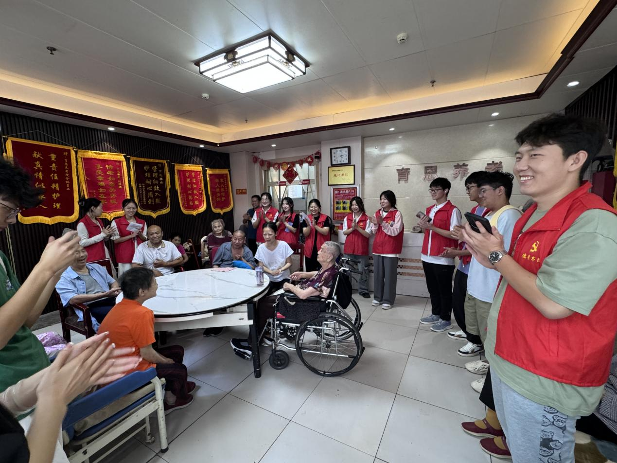 7月2日下午,实践团队成员到达育恩养老院展开活动。首先团队成员许佳欣、张凯贝、李露三人对养老院工作人员进行了心肺复苏的讲解与演示,接着团队其他成员对突发情况的应对、夏季如何防暑及高血糖高血压相关内容进行了简单的科普。为给养老院老人们带去更多温暖,团队成员和养老院工作人员一起演唱了歌曲《我和我的祖国》《强军战歌》等经典歌曲,引起不少老人的共鸣,纷纷跟着合唱。坐在前排的李阿姨开心之情溢于言表:“感谢志愿者们的到来,不仅教会了我们非常实用的急救知识,还给我们带来了很多欢乐。”