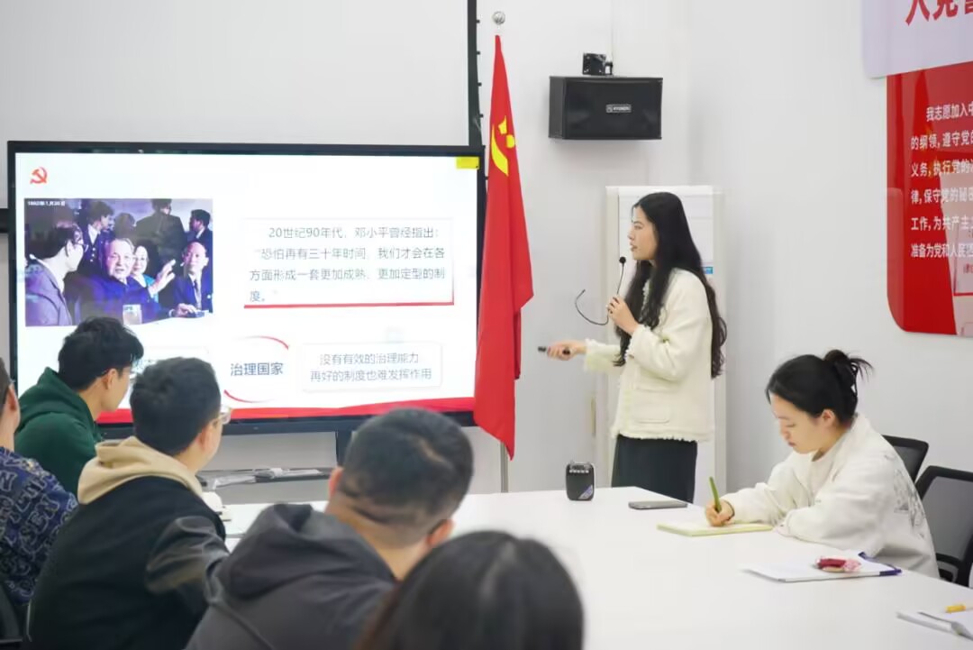 为全面深入学习宣传贯彻党的二十届三中全会精神,认真落实《新乡医学院三全学院学习宣传贯彻党的二十届三中全会精神工作方案》文件要求,引导全体师生把思想和行动统一到全会精神上来,把智慧和力量凝聚到落实全会确定的各项目标任务上来,推动全书院兴起学习宣传贯彻党的二十届三中全会精神的热潮,11月7日,德馨书院党总支在党建活动室举行学习贯彻党的二十届三中全会精神宣讲会,本次会议特邀马克思主义学院王桃金老师任主讲人,德馨书院全体教职工及部分学生党员、发展对象、入党积极分子参加此次会议。