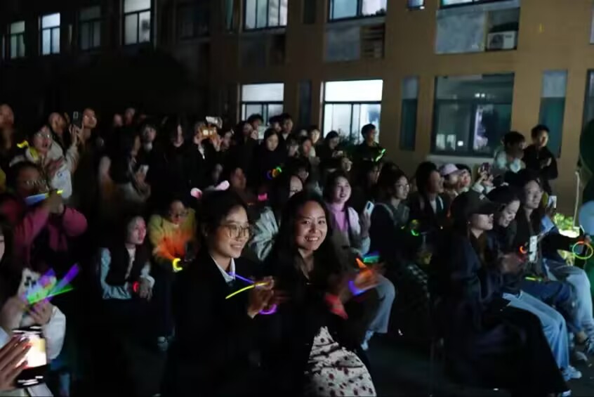 夜幕低垂,星光与灯火交相辉映,德馨书院的小露台上,一场精彩绝伦的晚会正在上演。晚会以璀璨的灯光和热烈的欢呼声拉开序幕,现场气氛热烈而庄重。节目形式丰富多样,涵盖了歌曲、舞蹈、小品、相声以及走秀等多种艺术形式。
