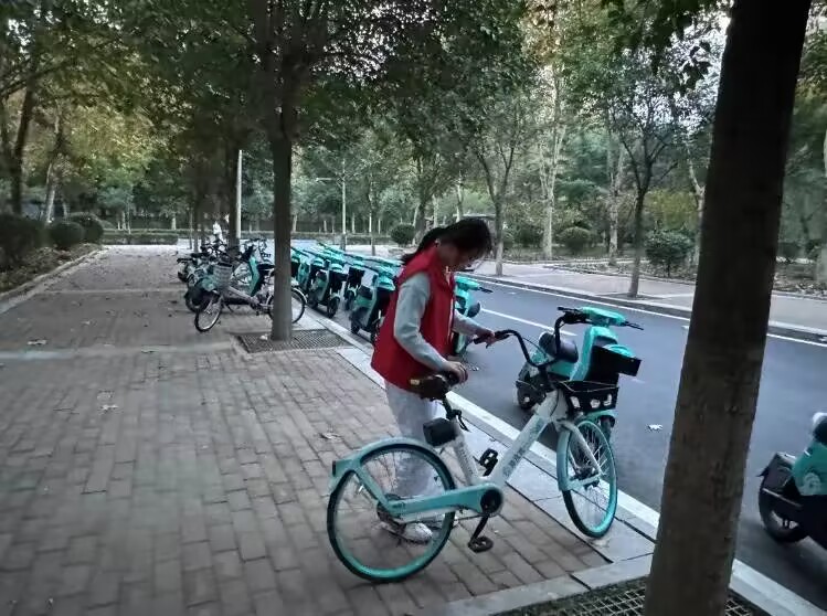 活动当天,志愿者们身着统一的服装,精神饱满地投入到工作中。他们迅速分组,各司其职,耐心地将散乱的单车一一搬运到指定区域,并仔细调整单车的位置,确保它们头尾一致、排列整齐。在摆放单车的过程中,志愿者们还主动向过往的同学宣传文明用车的重要性,呼吁大家共同爱护公共资源,遵守停车规则,为营造一个整洁有序的校园环境贡献自己的力量。经过志愿者们的共同努力,原本杂乱无章的单车停放区域很快变得井井有条,校园环境也因此焕然一新。此次活动不仅有效改善了单车停放秩序,还进一步提升了同学们的文明意识。