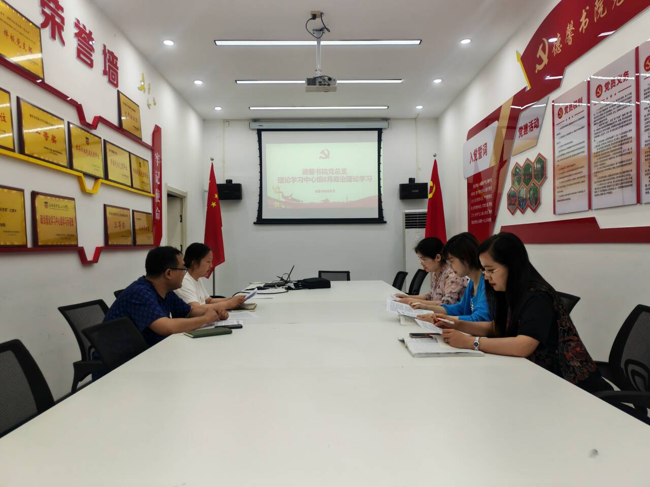 6月25日,德馨书院党总支理论中心组学习会在书院党建活动室开展。德馨书院党总支副书记平丹丹,组织委员高明,宣传委员李雅琳,纪检委员张晗,统战委员侯永爽,参加了本次学习会议,会议由平丹丹主持。