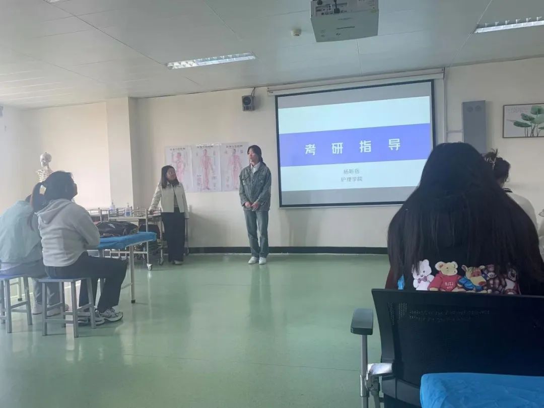 11月5日,2024级护理学专业211班﹣212班全体同学在杨昕岳老师的带领下在护理实训楼四楼健评3教室开展了以“学业规划与指导”为主题的学业指导会。杨老师首先剖析了考研与考公的异同,帮助同学们根据自身情况设定合理的目标。随后,他详细解读了考公和考研的考试科目,为同学们点亮了前行的灯塔。针对考研复习,杨老师更是倾囊相授,指导同学们如何制定科学的复习计划和时间表,确保每一步都走得坚实有力。