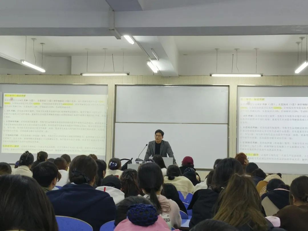 11月6日,2024级护理学专业215班、216班在崔雪岩老师的带领下在谨学楼B305教室开展以“四六级技巧与备考指南”主题的学业指导会。董老师从考试时间和题型入手,引导同学们明确备考方向。他详细讲解了各题型的解题技巧,并结合自身学习经验,为同学们推荐了实用的手机软件和学习资源。通过董老师的指导,同学们不仅掌握了更多有效的备考策略,还学会了如何高效利用时间,为即将到来的考试做好了充分准备。