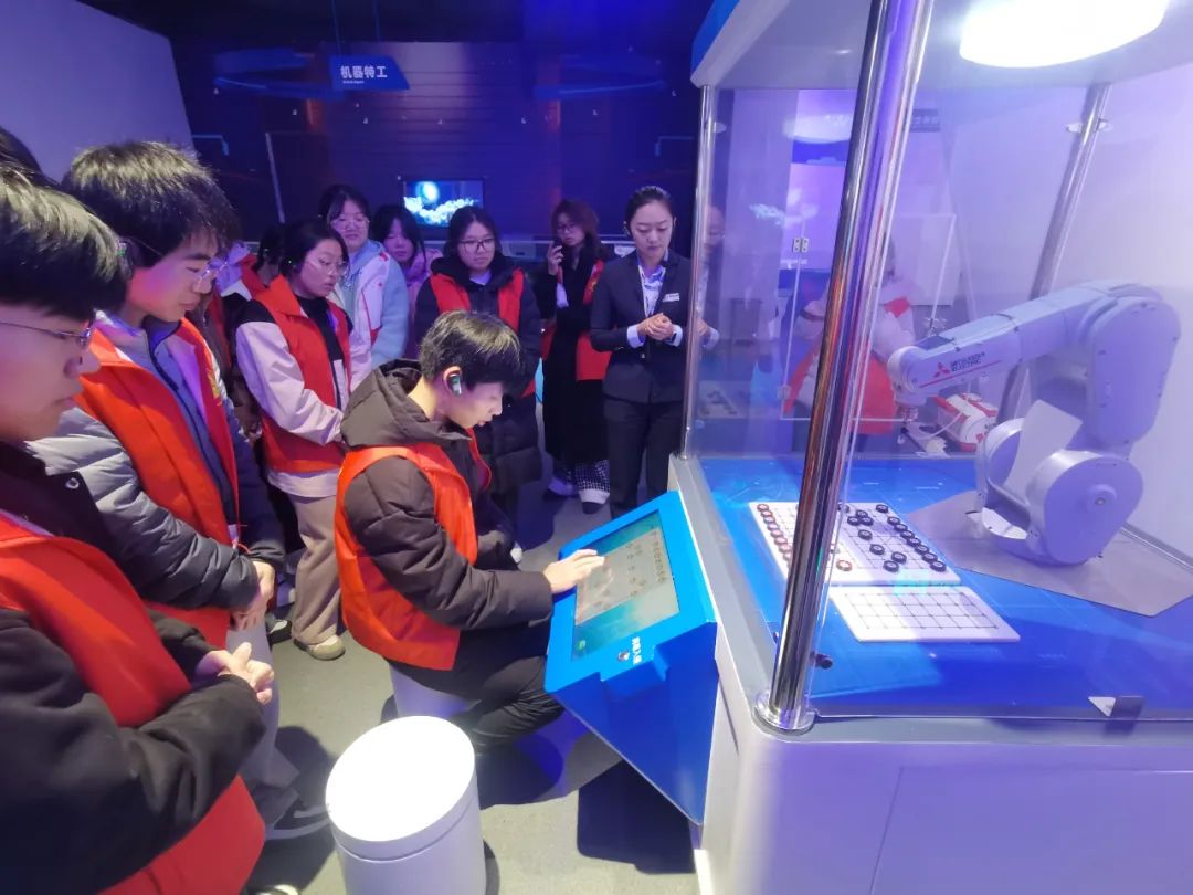 馆内设置了个人安全、政企安全、社会安全、综合竞技四个主展区。在讲解员的带领下,同学们首先参观了个人安全展区,通过互动体验、实物演示等多种形式,深入了解了网络发展史、AI技术、密码原理、计算机病毒原理等网络安全知识,体验学习如何保护个人隐私、识别网络诈骗、寻找针孔摄像头等实用技能;在政企安全展区,重点了解国家和企业在网络安全方面面临的挑战及应对策略;在社会安全展区,通过模拟攻击与防御的展示,直观感受网络安全的重要性与紧迫性;在综合竞技区,体验和人工智能比赛下象棋、专注力对抗比赛等,亲身感受网络安全实战氛围。