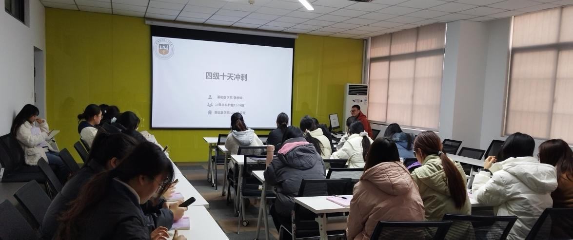 12月6日,2024级医学检验专升本183-184班的同学们在吴晓莹老师的带领下,在医学检验学院4楼第八实验室开展了以“四六级考试指导”为主题的学业指导会议。活动伊始,指导老师向大家介绍了考卷的结构,包括其题型及其所占分值。接着,吴晓莹老师为大家分享了一些做题技巧和复习方法,并告诉大家一定要有自己的学习计划。最后,吴晓莹老师强调一定要坚持学习,进行模拟考试,纠正自己的错题。同学们从这次会议中学到了很实用备考方法,有了明确的目标,增强了应考的信心。