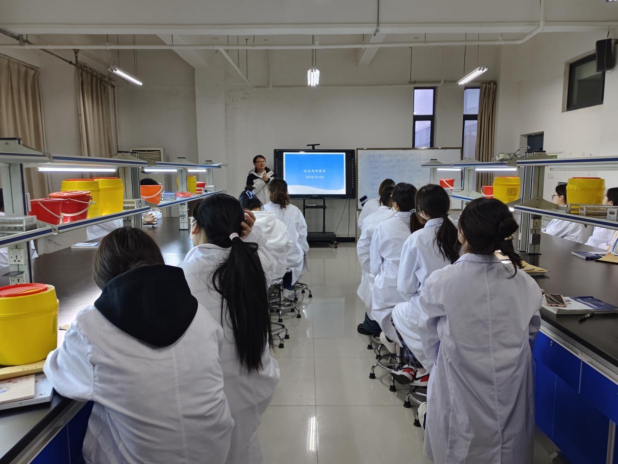 12月4日,2022级医学检验技术23、24班全体同学在段家名老师的带领下以论文写作为主题在检验学院第五实验室开展了学业导师会议。首先,导师凭借自身丰富的学术经验和对专业领域前沿问题的了解,帮助同学们开拓视野,提供一些有研究价值且符合同学们兴趣与能力的选题方向建议。接着,导师又指导同学们如何进行学术论文的写作,分享了一些论文写作的技巧和方法,他强调了文献综述、数据分析和论文修改的重要性。最后,导师对于同学们的疑问进行一一解答,并重点介绍了学术论文的写巧和常见问题,明确了论文的结构和各部分内容的写作要点。这次学业指导对提高同学们学术论文写作的能力具有重要意义。