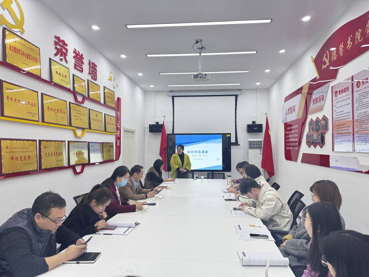 为进一步提升书院全体教职工科研项目申报质量,推动科研工作高质量发展,3月19日上午,德馨书院在党员活动室举办了一场专题讲座。本次讲座特邀马克思主义学院王桂琴副教授,就“如何申报高质量课题”进行了深入讲解。教师教学发展中心顾问马振江、教师教学发展中心主任助理孙银平、德馨书院党总支副书记平丹丹以及全体教师参加此次会议。李雅琳主持会议。