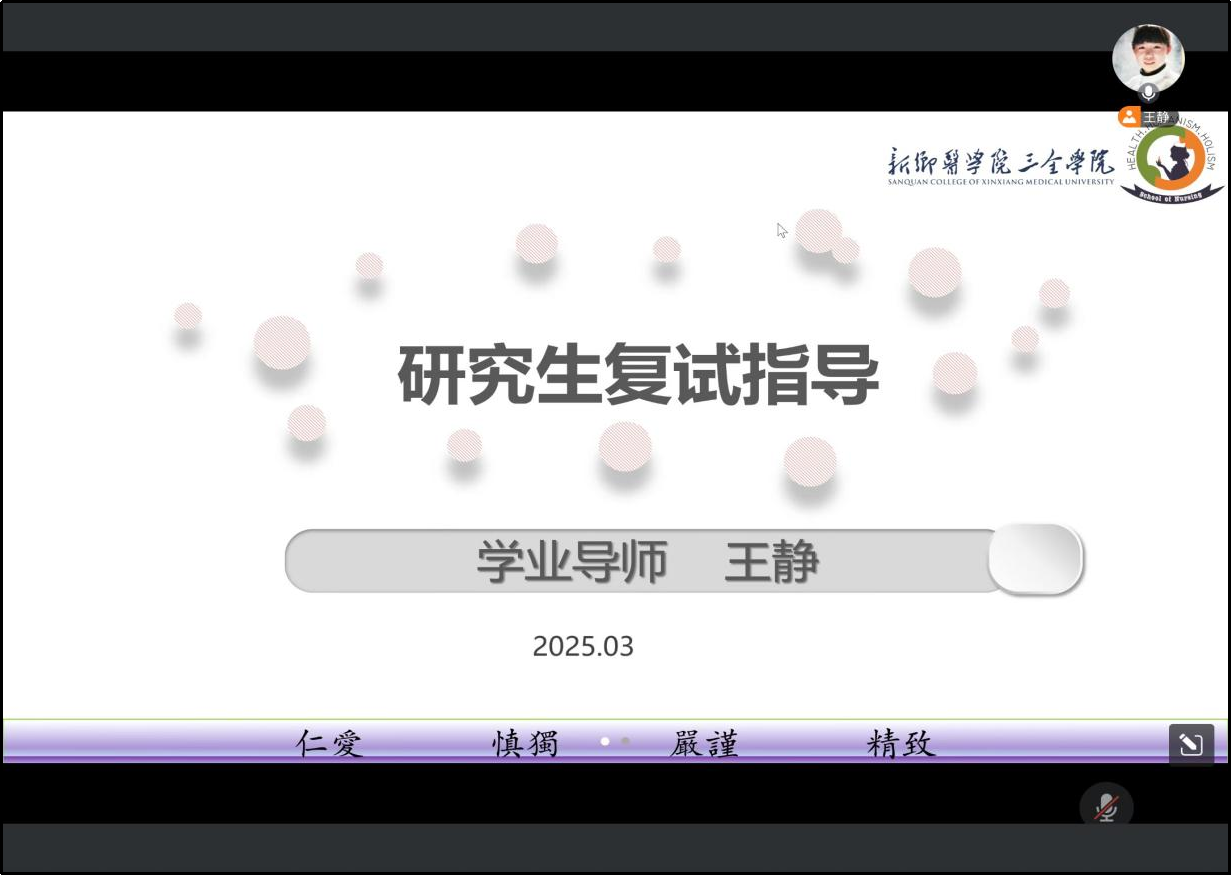 3月13日,2023级医学检验技术专升本179-181班全体同学在学业导师张俊丽的带领下在腾讯会议开展了以学业规划与指导为主题的学业指导会。会议伊始,老师介绍了研究生复试的流程,并强调了复试前的准备工作。随后,张老师向同学们讲解了复试技巧与注意事项,提醒大家注重表达和应变能力。接着,老师分析了调剂政策与策略,帮助同学们提升录取机会。在就业方面,张老师介绍了当前就业形势,并分享了求职技巧、就业渠道及相关资源,为大家提供了实用的指导。本次会议为2025届毕业生提供了全面的考研复试与就业指导,帮助学生明确了方向,增强了信心。