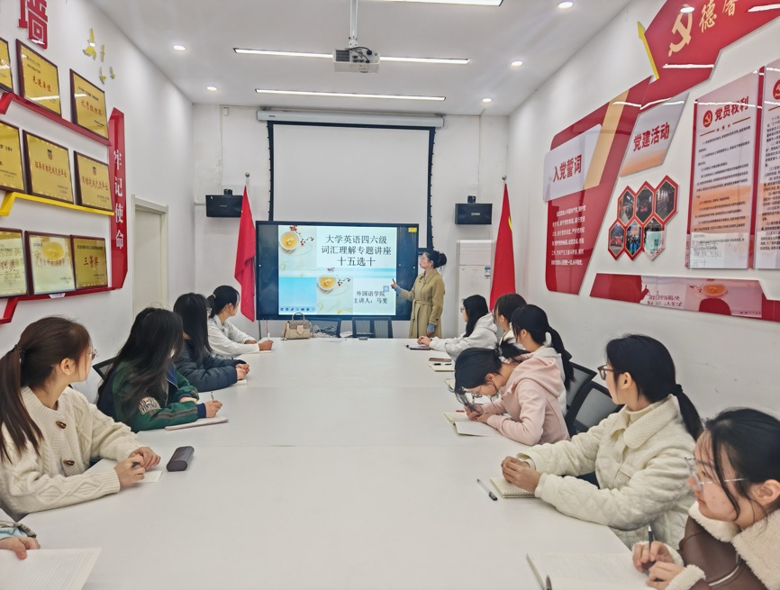 3月18日,2024 级护理专业 62-65班的同学在马斐老师的带领下,在德馨书院党建活动室开展了以“大学英语四级阅读专题一(十五选十)”为主题的非专业学业导师会议。马斐老师选取了一篇四级阅读十五选十真题,与学生一起进行现场演练,共同讨论解题思路。通过此次会议,学生对该题型有了更加深入的理解,解题能力也有所提高,有效促进了语言能力与思维品质的协同发展。
