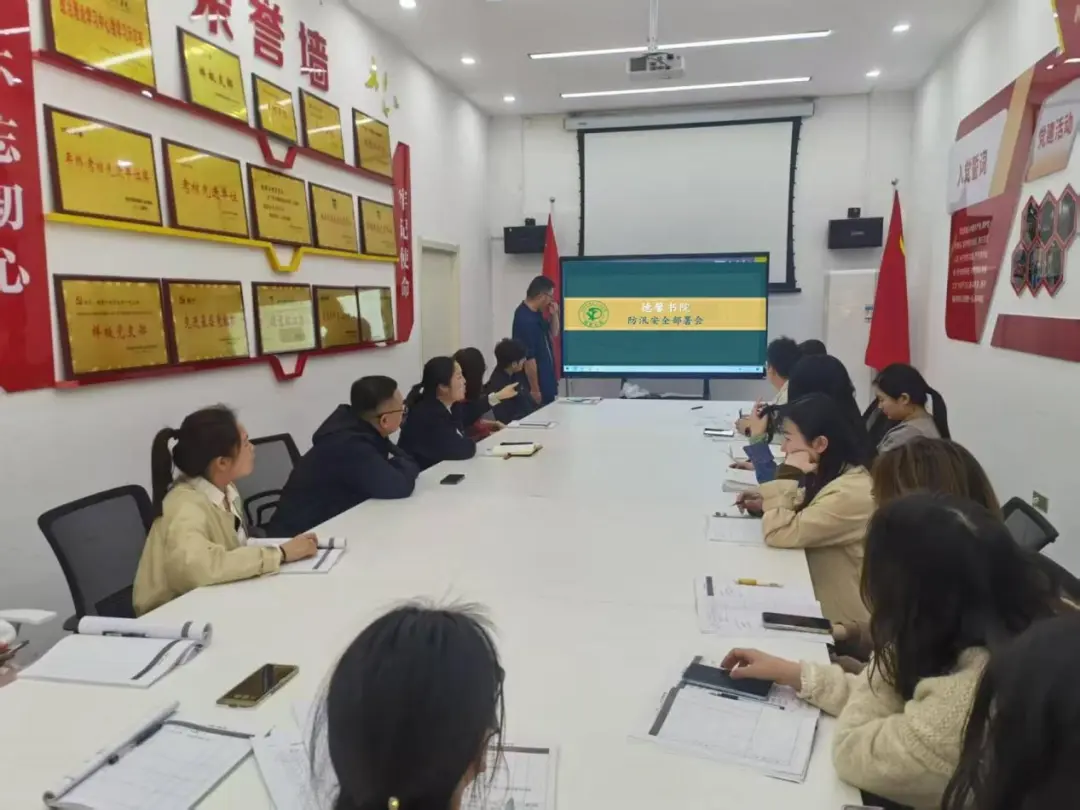 演练前夕,德馨书院防汛工作小组召开了防汛安全专题部署会议。会议明确了演练目标、流程、各环节负责人及具体分工,强调了“安全第一、预防为主、统一指挥、分级负责”的指导原则,确保演练活动组织有序、责任到人。通过细致的规划和周密的准备,为演练的顺利进行奠定了坚实基础。