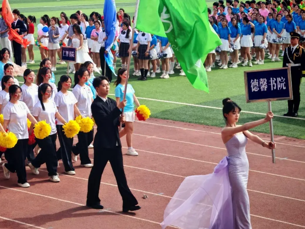 上午9点,豫北医学院第一届田径运动会在激昂的音乐声中盛大开幕。伴随铿锵有力的音乐节奏,德馨书院方阵闪亮登场。师生们身着统一服装,以整齐划一的步伐和昂扬的精神风貌走过主席台,充分展现了书院团结奋进、青春活力的风采。