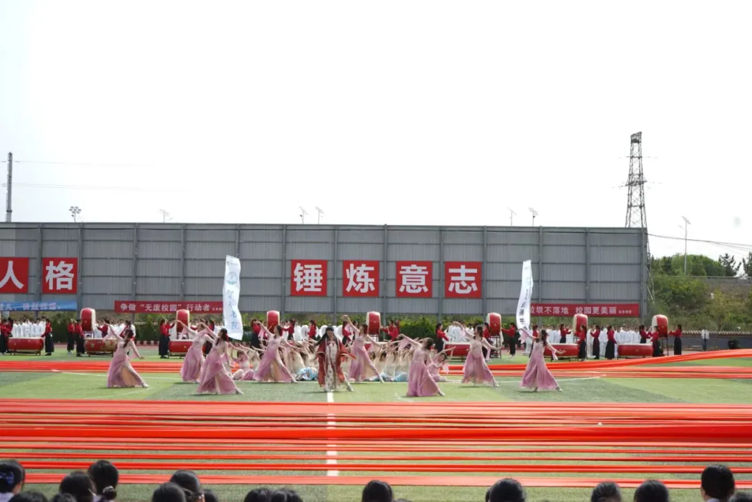 随着现场音乐节奏的骤然变化,经过数日精心筹备的大型团体操表演在全校师生的热切期盼中震撼呈现。在春意盎然的运动场中央,学子们以精湛的技艺演绎“蝶舞”表演。伴随着悠扬的音乐,学生们仿若彩蝶在花丛中翩翩起舞。她们身着轻盈的舞衣,色彩斑斓,仿佛是春天里盛开的花朵。在表演中,学生们灵动的身姿、优美的旋转,将蝶之美展现得淋漓尽致。她们挥舞着双手,仿佛蝴蝶扇动翅膀,给现场带来了梦幻般的氛围。每一个动作都精准而富有感染力,每一个转身都优雅而充满力量,让观众仿佛置身于一个充满生机与活力的梦幻世界。