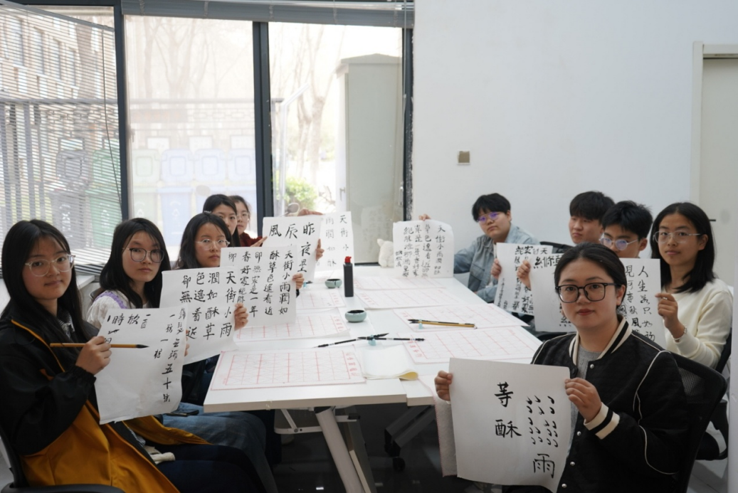 4月7日,融媒体中心制作部的同学在王梦娜老师的引导下,于德馨书院生命健康安全体验馆开展了以“讲述毛笔字”为主题的非专业学业导师会议。会议现场,王梦娜老师以“永字八法”为核心教学内容,现场进行毛笔书法示范:通过分解“永”字的八个基本笔画(侧、勒、努、趯、策、掠、啄、磔),重点强调“横如千里阵云,竖如万岁枯藤”的笔法要领,特别演示“起笔藏锋,行笔中锋,收笔回锋”的运笔技巧,并结合宣纸特性,讲解墨色浓淡与行笔速度的关系。在学生练习过程中,王梦娜老师采取个性化指导:针对执笔姿势不规范者,采用“五指执笔法”矫正器辅助调整,对笔画力度控制欠佳者,建议从篆书直线条开始筑基训练,为提升整体章法意识,示范“计白当黑”的布局原则。本次活动突破传统教室边界,在生命健康主题场馆巧妙构建传统文化体验空间。王梦娜老师“理论+实践+文化”的三维教学模式,既传承了书法技艺,更激活了年轻学子对中华美学的感知力,为融媒体创作提供了深厚的文化滋养。