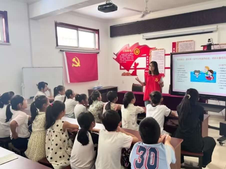 活动期间,团队围绕“爱国认知启蒙”与“校园实践行动”双线推进。7月1日-7月3日,“爱国认知启蒙”篇章顺利开展。团队邀请当地退休教师、红色宣讲员,讲述延津县抗日英雄支援前线、沙河村先辈无私奉献的故事;组织孩子们观看《小兵张嘎》《我和我的祖国》影片片段,其中精选了《小兵张嘎》中嘎子智斗汉奸的片段,以及《我和我的祖国》里“夺冠”“升旗”等充满民族自豪感的场景。当银幕上五星红旗冉冉升起时,孩子们不约而同地挺直了身板。观影后,“少年爱国模样”研讨会热闹非凡,孩子们稚嫩的话语中,已然埋下了爱国的种子。通过这些活动,孩子们汲取了爱国精神养分,触摸到历史温度,爱国思想根基得以筑牢。7月4日-7月6日,团队发起“校园爱国文明行”活动。通过划分班级卫生责任区开展美化竞赛、打造“爱国文化角”、设立“校园小雷锋”岗位鼓励互助等形式,将爱国精神融入日常校园生活。