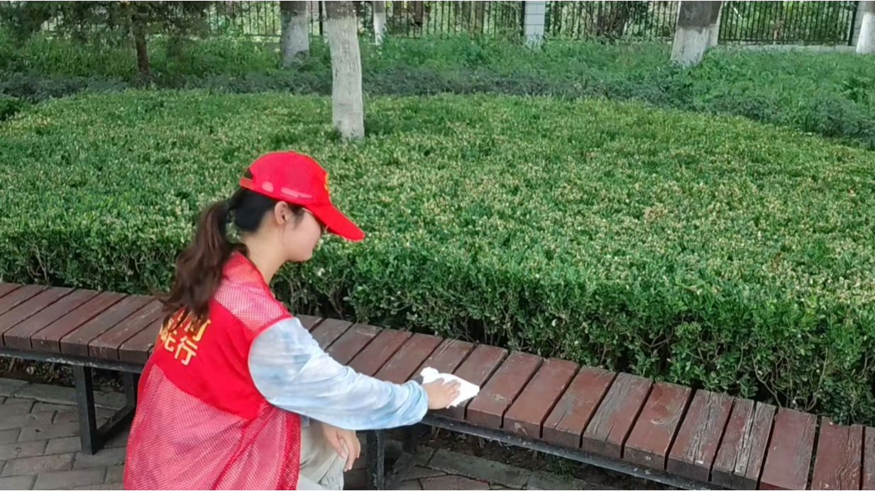6月28日-7月3日,实践攻坚阶段,张文蕾同学以高度的责任感与执行力投身社区环境整治工作。她手持清洁工具,穿梭于社区街巷楼宇之间,对卫生死角的堆积杂物、墙面顽固小广告进行彻底清理,使社区面貌焕然一新;主动参与绿化养护工作,精心修剪绿植、补种时令花卉,为社区增添盎然生机;面对车辆乱停乱放问题,她以耐心细致的沟通方式,积极引导车主规范停放,并协助疏导交通,有效改善社区公共秩序。每日实践结束后,她都会认真进行工作复盘,系统梳理清洁技巧、沟通方法等实操难题,与实践团队成员深入交流经验,通过不断总结反思优化工作策略,切实提升服务质量与工作效率。