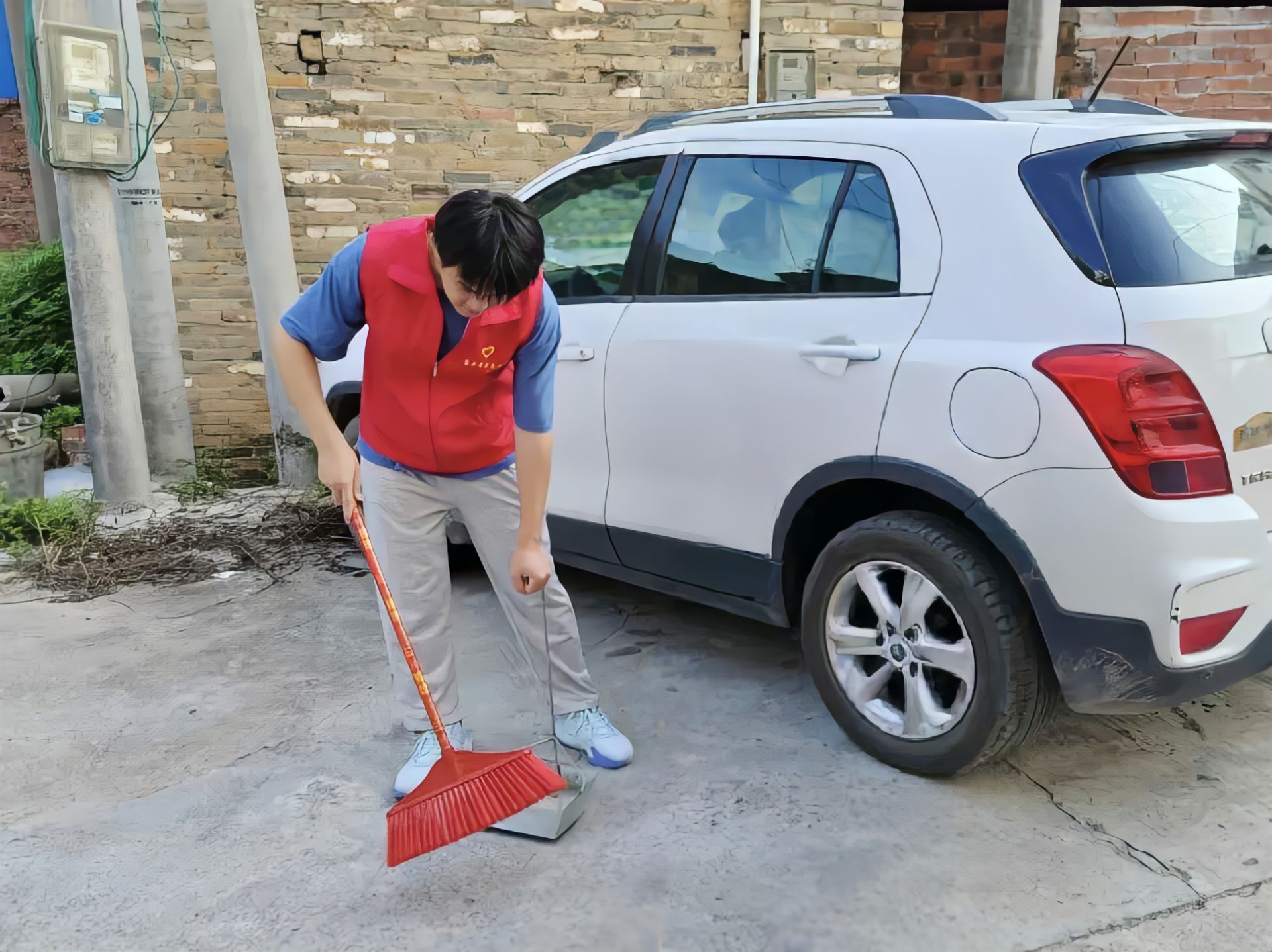 7月11日-7月13日,周旭同学带着清洁工具敲开村里老人的家门。他细致清扫院落死角,搬运堆积的废旧农具,并用消毒液对饲养家禽的区域进行消杀。“孩子干活真下力气!”老奶奶指着焕然一新的小院连连称赞。三天里,他累计帮助7户村民完成庭院整理,特别针对行动不便家庭实施精准帮扶,有效减少了病媒生物滋生隐患,赢得了村里老人的称赞。7月14日-7月16日,顶着35℃高温,周旭同学的身影活跃在村主干道。他手持长柄夹拾取塑料袋、烟蒂等路面垃圾,清理排水沟内腐叶淤泥。最艰巨的任务当属打扫村子的主干道,由于常年没人来清理,道路上落叶堆积成山,又因为一场大雨让落叶难以被清扫,他耗费三个小时将落叶一点一点清扫堆放。村支书见证全程感慨道:“这小伙子汗湿透了衣裳也不停手,给咱村党员上了堂实打实的环保课!”7月17日-7月18日,在村民指导下,周旭同学掌握了绿化带养护要领。他俯身剔除冬青丛中的饮料瓶、农药袋,将可回收物分类装袋,有毒有害物专门处置。面对缠结在月季丛中的塑料薄膜,他小心翼翼徒手解离避免伤及花枝。村民赵伯伯望着整洁的绿化带表示:“以前觉得城里才搞垃圾分类,现在明白了,好环境是守出来的!”