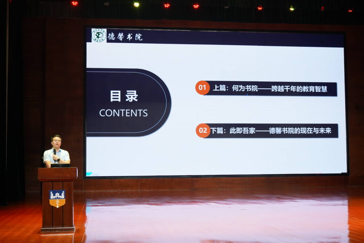 讲座共包含2个篇章。上篇:何为书院——跨越千年的教育智慧。下篇:此即吾家——德馨书院的现在与未来。内容涉及:豫北医学院书院制发展历程、书院建设和发展、通识教育建设情况、育人成效四个方面。
