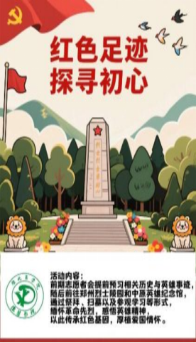 德馨书院将组织20名志愿者开展“红色足迹,探寻初心”主题活动。活动前期,志愿者将提前研习红色历史与英雄事迹,筑牢认知根基;随后前往郑州烈士陵园与中原英雄纪念馆,通过祭拜、扫墓以及参观研学等形式,缅怀革命先烈的峥嵘岁月,感悟英雄精神的时代价值,以实际行动传承红色基因,厚植家国情怀。