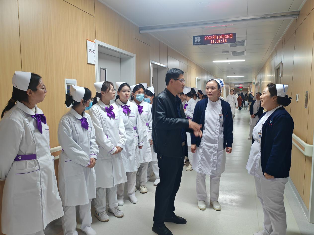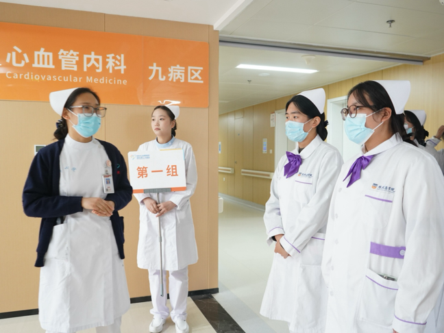 经验分享结束后,287名新生在带队教师分组下深入临床一线科室,开启“流动课堂”实践学习。在心血管内科,同学们沿护理“黄金动线”了解病房布局、智慧护士站应用、监护设备原理与治疗车管理,切身感受“以患者为中心”的护理理念;在心血管外科,无菌换药室与康复指导区的科学布局,展现了心脏外科护理的专业严谨;在CSICU/TICU病房,各类监护设备织就“生命天网”,让“急危重症护理中枢”具象可感;在急诊科,抢救、留观、清创区域高效联动,设备布点科学精准,处处体现着急诊护理“与时间赛跑”的职业逻辑。