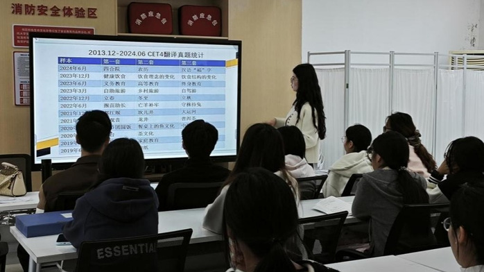 10月14日,2024级护理学专业62-65班全体同学在马斐老师的带领下,于德馨书院党建活动室开展了以“大学英语四级翻译专题2”为主题的非专业学业导师会议。马斐老师细致拆解句子与段落翻译的逻辑差异,提炼实用转化策略,还结合孔子相关四级真题现场演示技法,更建议同学们课后依托真题复盘巩固。此次会议的开展,让同学们精准掌握无主语句式转化与段落逻辑衔接的技巧,翻译的准确性与流畅度得到显著提升,为四级备考筑牢根基。