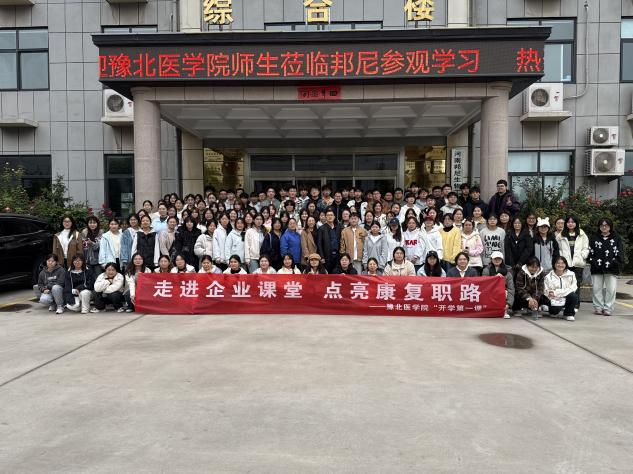 为深化实践育人内涵,助力新生科学做好职业规划,10月25日下午,德馨书院以“走进企业课堂,点亮康复职路”为主题,由书院党委副书记刘波帆带队赴河南邦尼生物工程有限公司开展“开学第一课”职业体验活动。学生处、康复医学院相关教师及康复工程专业全体新生参加。