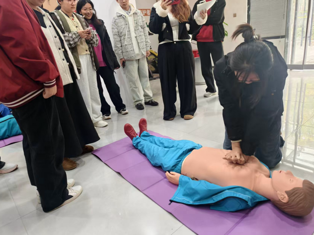 在书香浸润的同时,活动融合红十字特色,开展心肺复苏专业教学。通过规范化流程演示、资深志愿者细致指导及个性化实操练习,助力同学们全面掌握突发状况应急处置技巧。从意识判定、呼吸道畅通,到胸外按压、人工呼吸,每一个步骤均经过精准点拨,将“仁爱之心”转化为守护生命的实际能力,展现出学子的人文关怀与社会责任感。