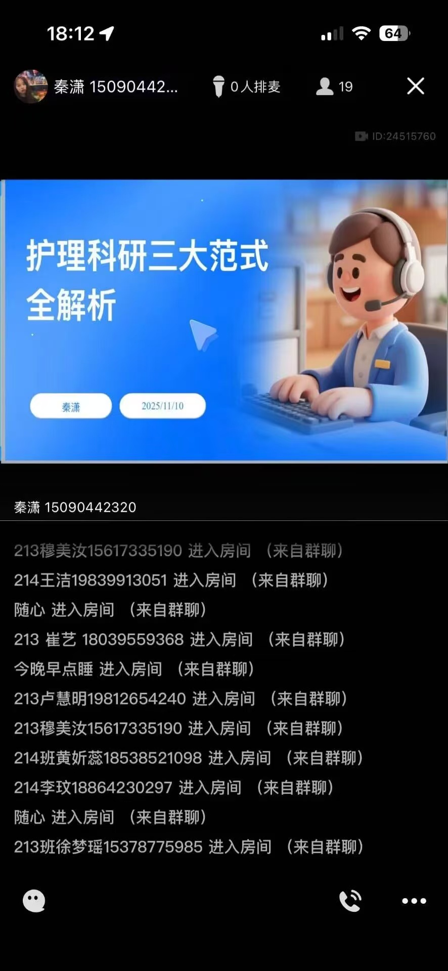 11月10日,2024级护理学专升本213-214班的同学们在学业导师秦潇的带领下,于线上QQ会议成功开展了以“护理科研三大范式全解析”为主题的学业指导会议。会议伊始,秦潇老师聚焦“目标引领与高效学习”,为同学们拆解了科学学习计划的制定逻辑。她强调,实习阶段的成长需以清晰目标为锚点,既要确立夯实专业基础、熟练操作技能的短期目标,更要规划贴合职业发展的长期方向;同时,实习前的针对性预习与实习中的时间精细化管理,是实现理论与实践深度融合的关键前提,唯有做好前置准备与过程把控,才能在临床实践中快速上手、稳步提升。在专业技能强化环节,秦潇老师结合临床实际需求,提出了明确的能力提升要求。她指出,无菌技术、静脉输液等核心操作是护理工作的“基本功”,同学们需通过反复实操、案例复盘实现熟练掌握、精准应用;针对ICU、手术室等特殊性较强的科室,更要提前梳理专科护理要点,主动学习应急处理流程、专科器械使用等专项技能,以扎实的专业功底应对不同临床场景的挑战。此次学业导师会议悉心指导宛如明灯,切实有效地助力同学们精准掌握高效学习策略,清晰锚定未来的奋进方向,为其成长之路铺就坚实基石。