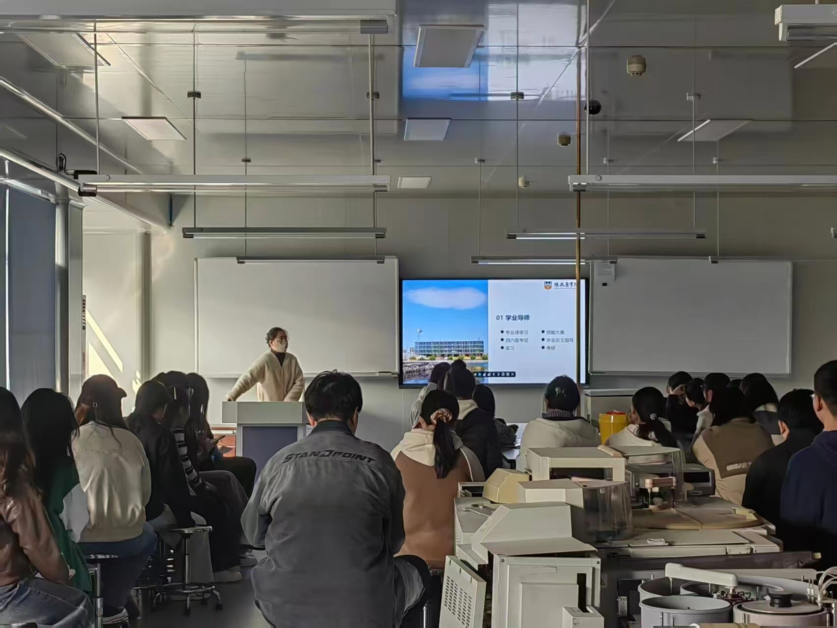 11月12日,2025级医学检验技术专升本181班-182班的学生们在学业导师郭亚飞的引领下,于笃学楼第八实验室开展了以“学业导师见面会”为主题的学业导师会议。会议伊始,郭亚飞老师首先细致询问了同学们的学习状况及普遍存在的疑问,对课程重点和时间管理进行了全面的指导,并强调了大三阶段应及早确立目标,注重理论与实践相结合。随后,郭亚飞老师还详细阐述了本学年的指导计划与导师职责,深入剖析了专业培养目标和课程体系,既提升了同学们的专业认同感,也给出了阶段性的学习规划与选课建议,助力同学们提高自主学习能力。在互动环节,同学们积极提出关于时间管理、考研和考公等问题,郭亚飞老师不仅耐心解答每一个疑问,更是结合历年经验,给出了切实可行的建议。本次指导会议不仅让同学们明确了学习任务,更坚定了他们学业发展的信心,尤其在学习方法与目标设定方面,同学们获得了具有针对性的指导。