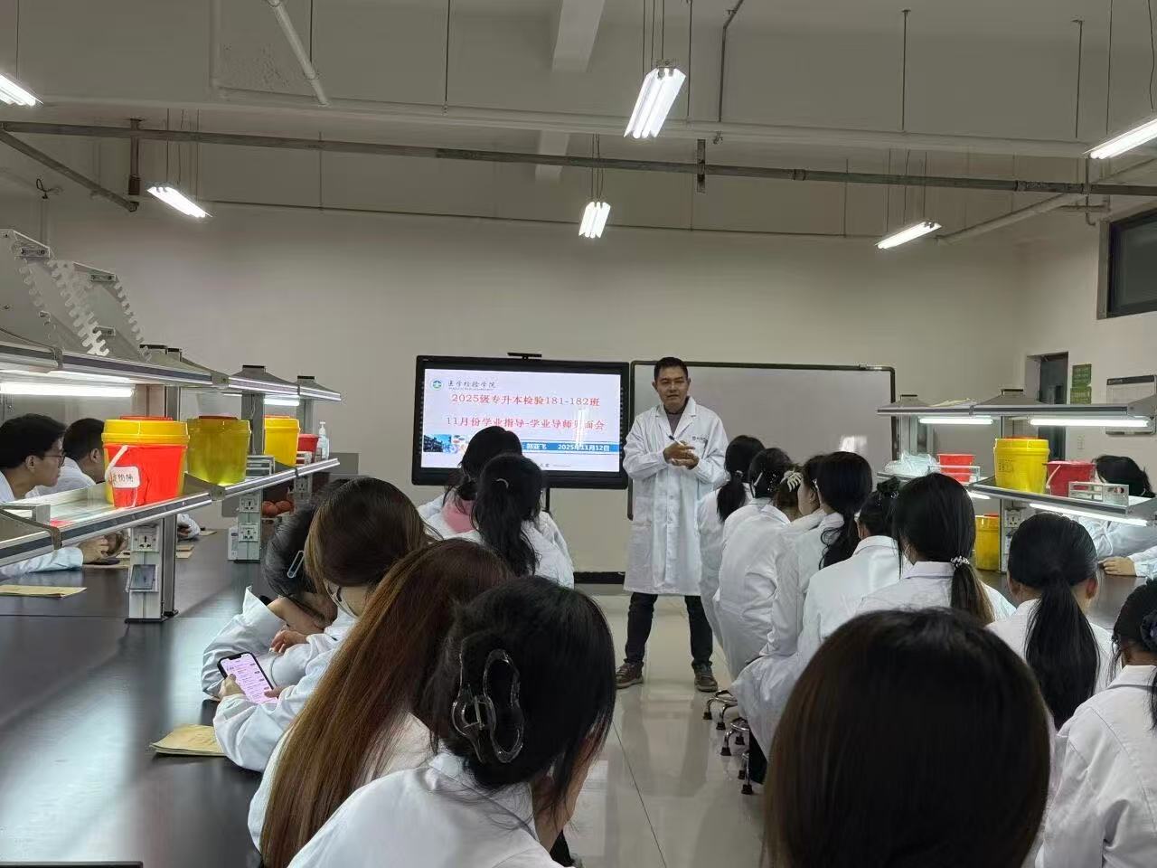 11月12日,2025级医学检验技术专业专升本179班-180班同学们在学业导师孟琰的带领下,于笃学楼C408教室开展了以“新学期导师见面会”为主题的学业指导会议。会议伊始,孟琰老师不仅详尽地解析了学业指导的关键要素,还从专业学术、职业发展、考研课程选择等多方面,给予了每位学生个性化的指导。随后,她细致地剖析了本专业的课程设置与就业方向,传授了高效的学习计划制定及复习总结技巧,并耐心回答了同学们关于四六级考试、考研、公务员考试等热点问题的疑惑,同时还系统地介绍了就业渠道及其拓展策略。此次指导会议结束后,同学们对本专业的认识得到了进一步的深化,同时也清晰了各自未来发展的路径。