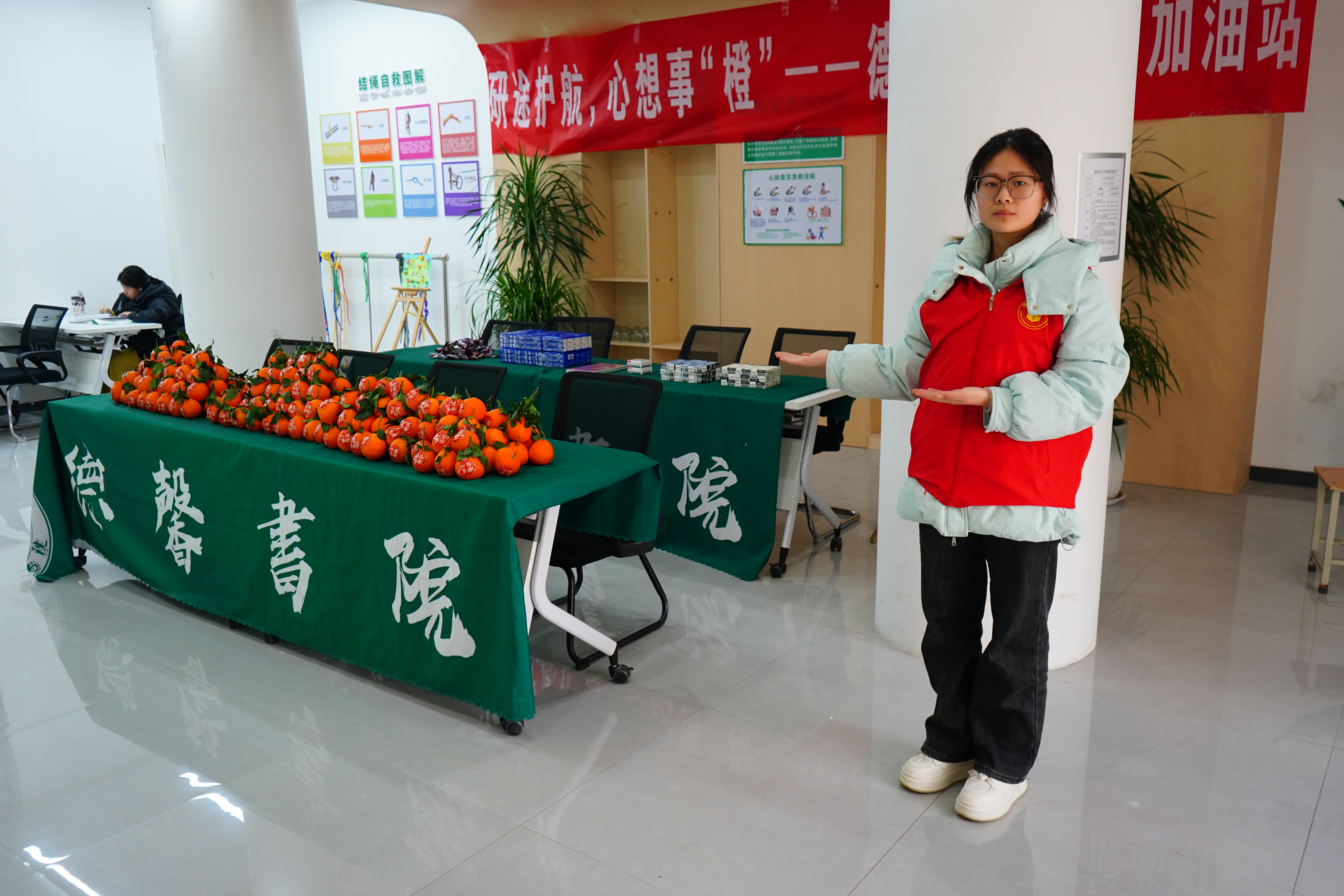活动地点:德馨书院生命健康体验馆(书院门洞南侧)                         最戳心的惊喜来啦!书院为每一位追梦人都准备了“心想事橙”大礼包~553颗饱满多汁的橙子,像一个个金灿灿的小太阳,咬上一口,清甜的汁水在舌尖迸发,瞬间驱散备考的疲惫与焦虑。这颗小小的橙子里,藏着书院最真挚的祝福:愿你提笔时从容自信,答题时思路清晰,合笔时如愿以偿,在考场上“橙”风破浪、披荆斩棘,一战成硕!