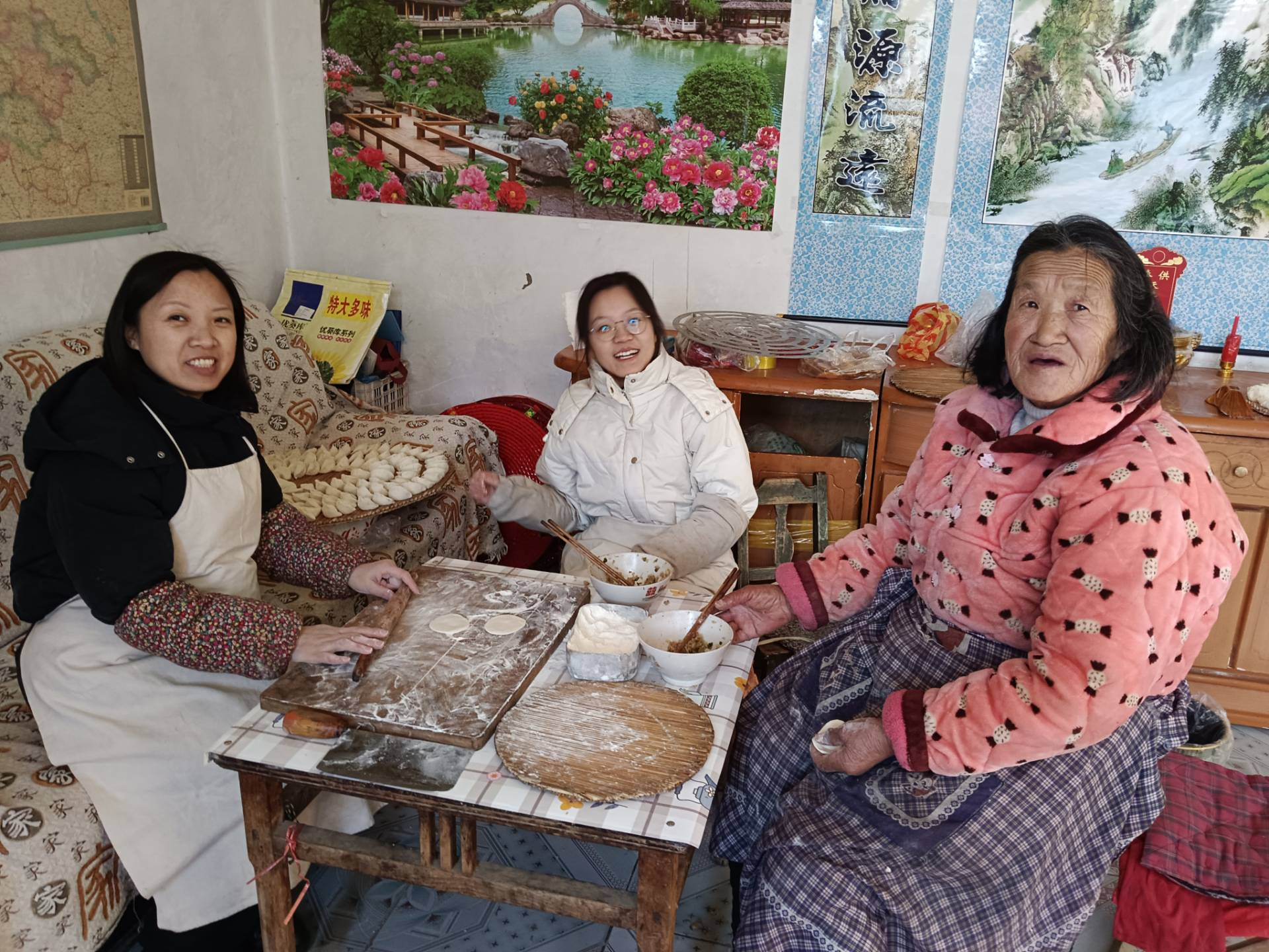 “这张照片定格在除夕的家中,我与妈妈、奶奶围坐案前,共包新春饺子。奶奶是家中的定海神针,每年春节,她都会以一双巧手,带领全家筹备团圆饭。妈妈负责擀皮,我与奶奶则专注包馅,三双手在案板上起落,面粉的清香与欢声笑语交织,暖意融融。此次归乡,能与奶奶、妈妈一同准备年夜饭,看着她们眼角的笑意,我真切体悟到‘孝悌’二字的分量,它并非高悬的道德箴言,而是藏在一擀一包的细碎日常里,藏在对长辈的耐心陪伴与温柔倾听中。这张照片,记录的不仅是年味,更是我心中最温暖的家的模样。”