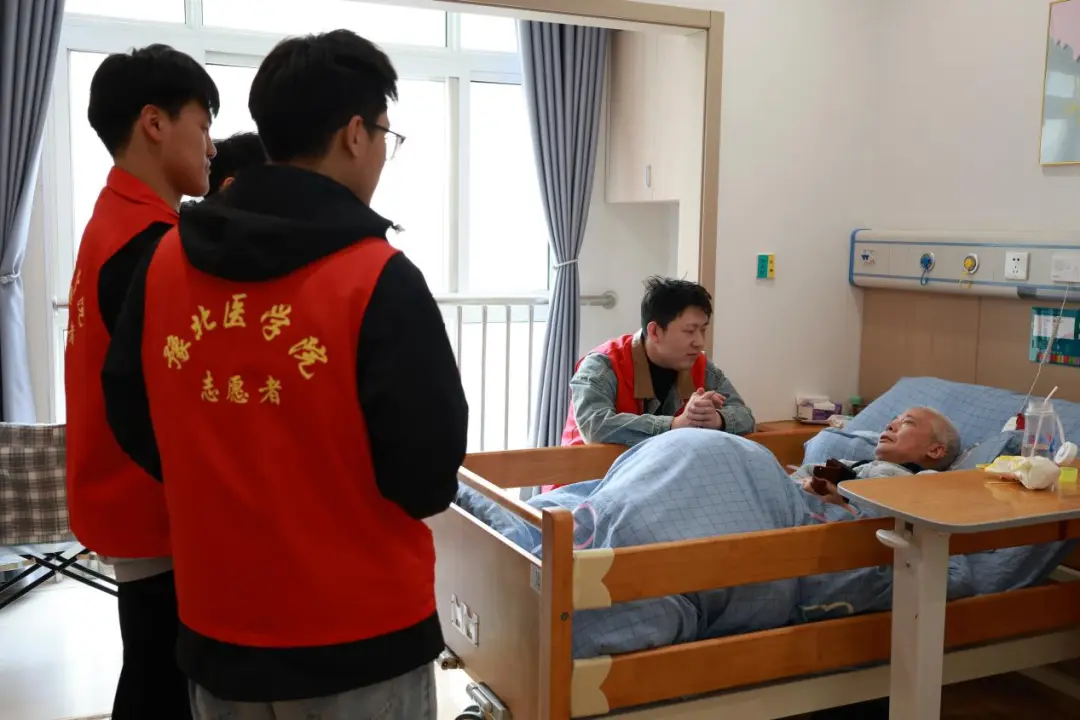 文艺表演结束后,党员志愿者们分组来到老人床边,与老人们促膝长谈、亲切交流,耐心倾听老人们的心声与过往经历,细致询问饮食起居、身体状况及康复进展,叮嘱大家注意保暖、按时服药、保重身体。志愿者们用真诚的陪伴缓解老人们的孤独感,以贴心话语传递党组织的关怀与温暖。一句句关切的问候、一个个温暖的瞬间,让老人们真切感受到青年党员的关爱,脸上洋溢着幸福的笑容。