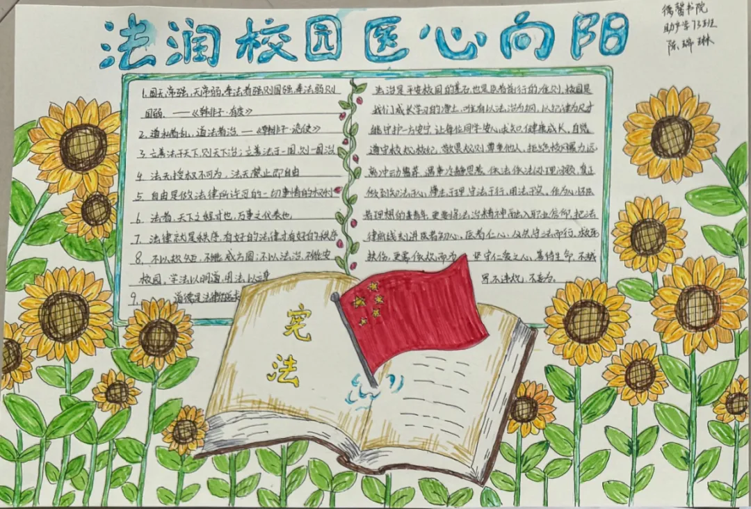 德馨书院组织开展了“法治在我心中”主题手抄报创作活动。同学们围绕宪法精神、民法典常识、反诈知识、医疗法律法规等主题,精心设计、用心绘制。一幅幅色彩鲜明、内容丰富的手抄报,既有法律条文解读,也有典型案例警示,还有医学生职业伦理感悟。